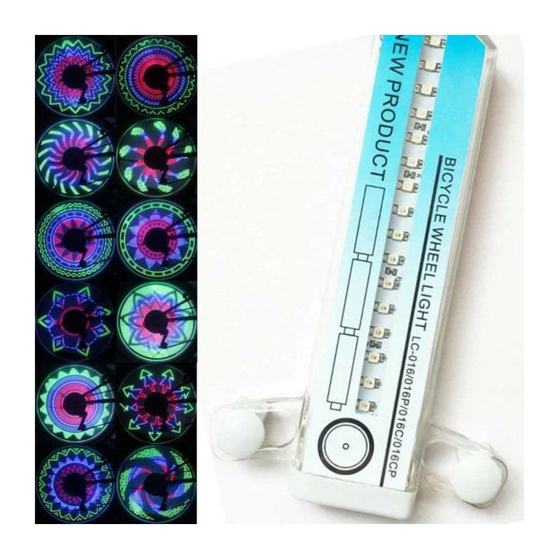 lo Rayon 32 Modes DIY Cyclisme Nuit Pneu32 modes de couleurs et motifs : Les lumières de roue de vélo est à DEL, il peut faire clignoter 32 types de motifs différents.La lumière de roue de vélo à DEL très lumineuse est très légère et n’affectera pas la vitesse de conduite.Le plus vite vous roulez, la plus complète et la de magnifiques motifs sont. Si la vitesse est trop lente, la roue de vélo lumières montreront moit