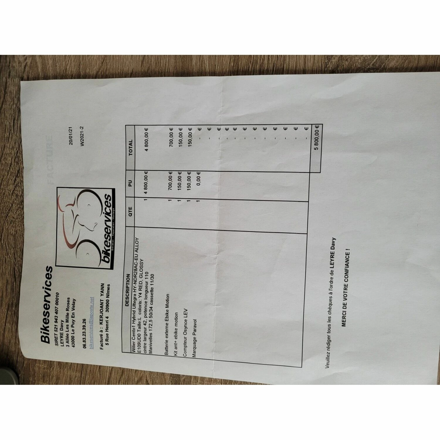 | Taille du Cycliste | 180 cm |