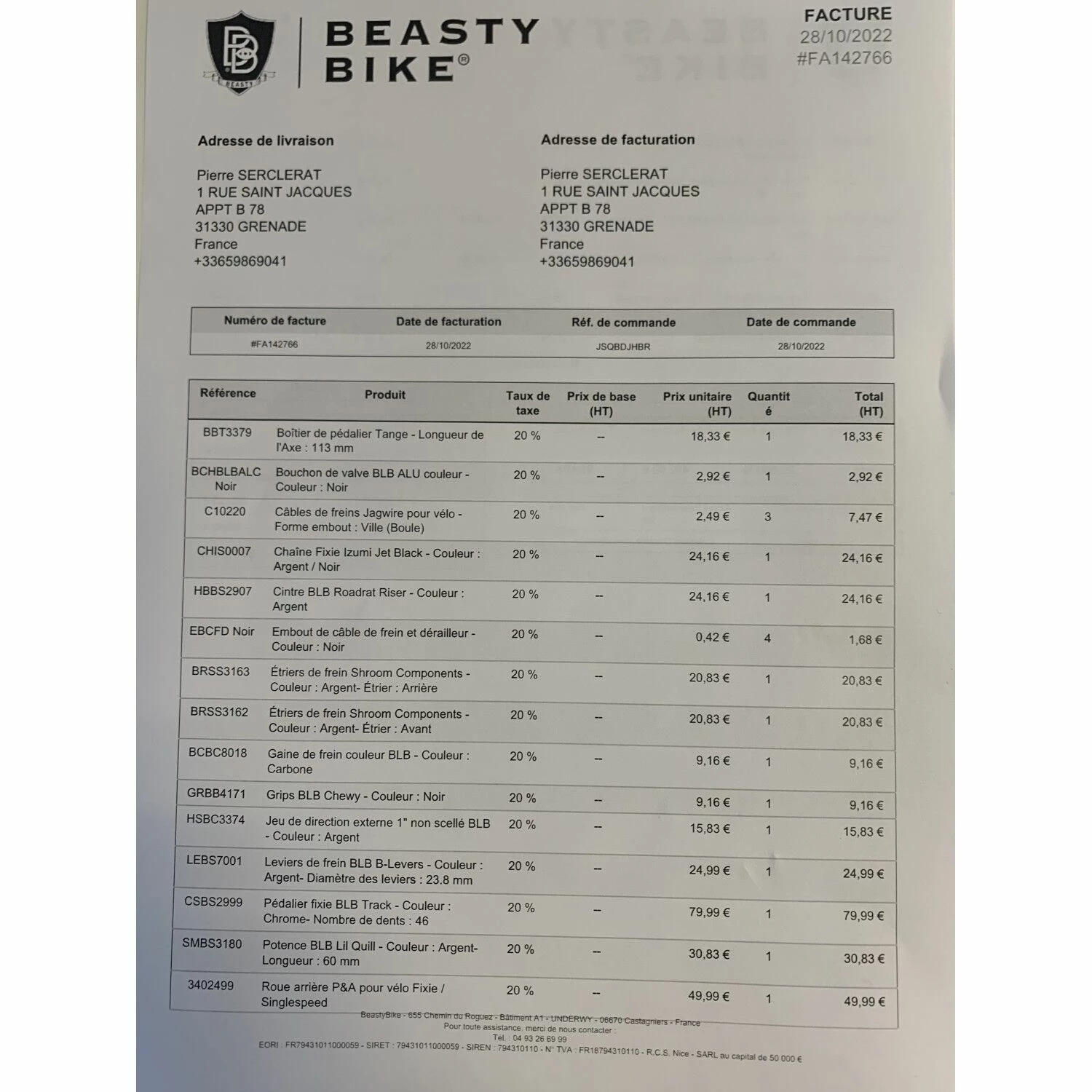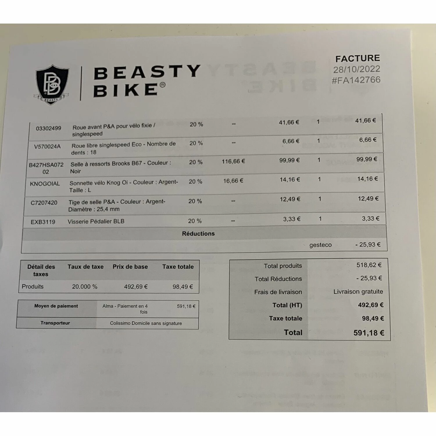 | Facture d'achat | Oui |